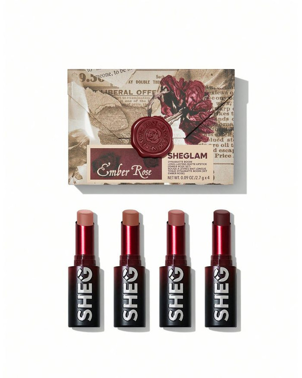 پک رژ لب جامد مات شیگلم Sheglam مدل Ember Rose Set رنگ های دارای جذاب و مات است که برای استفاده روزانه نیز بسیار مناسب میباشد. پک رژ جامد 4 عددی امبر رز شیگلم میتواند یه کادو فوق العاده شیک باشد ، یا یه خرید موفق برای داشتن رژلب هایی خوش رنگ که به راحتی در کیف قابل حمل است.