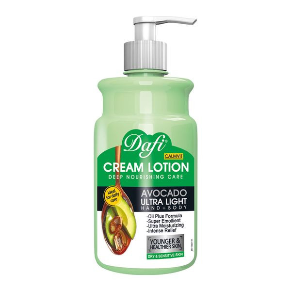 لوسیون بدن دافی مناسب پوست خشک و حساس حاوی روغن آوووکادو دارای خاصیت مغذی پوست و برای استفاده روزانه مناسب است. این لوسیون بسیار ملایم و قابل استفاده روی پوست دست نیز هست. این محصول، پوست شما را نرم و مرطوب میکند. بدون این که حس سنگینی روی پوست ایجاد کند. زیرا به سرعت جذب پوست دست و بدن میشود.