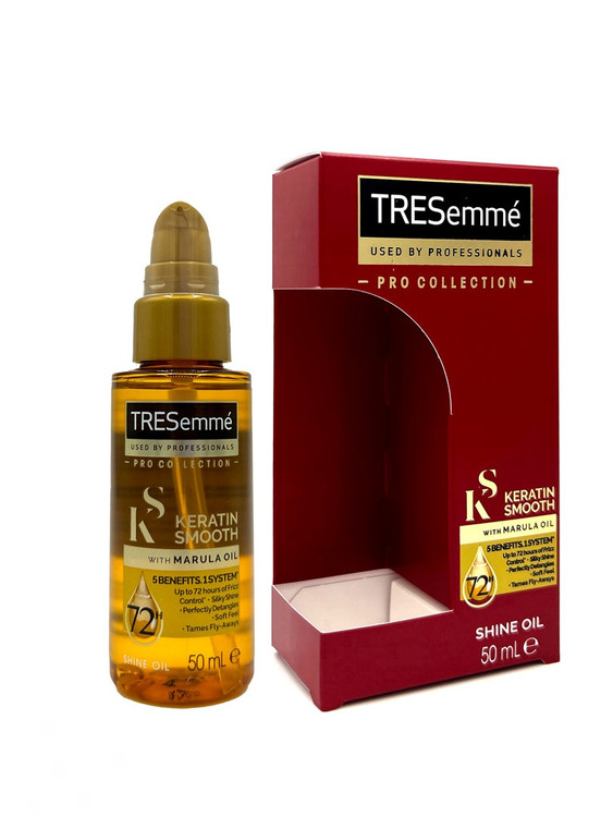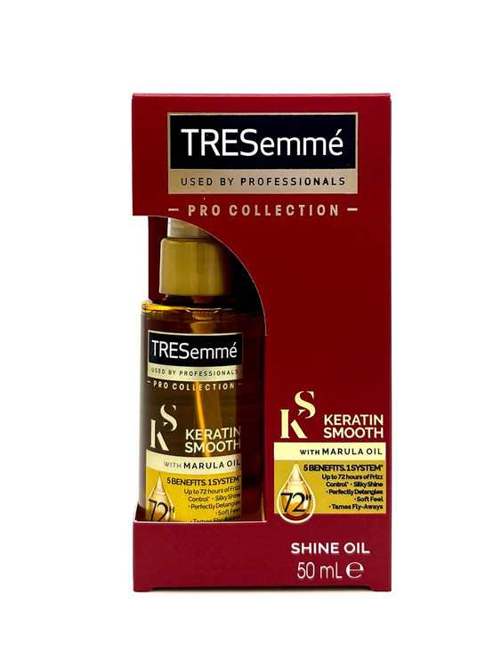 به عنوان بخشی از مجموعه TRESemmé Keratin Smooth، این روغن براق کننده پنج مزیت نرم کنندگی را در یک : با موخوره مبارزه میکند، گرهها را باز میکند، درخشندگی را افزایش میدهد، نرمی موها رود میافزاید و در طول روز از موها محافظت میکند.