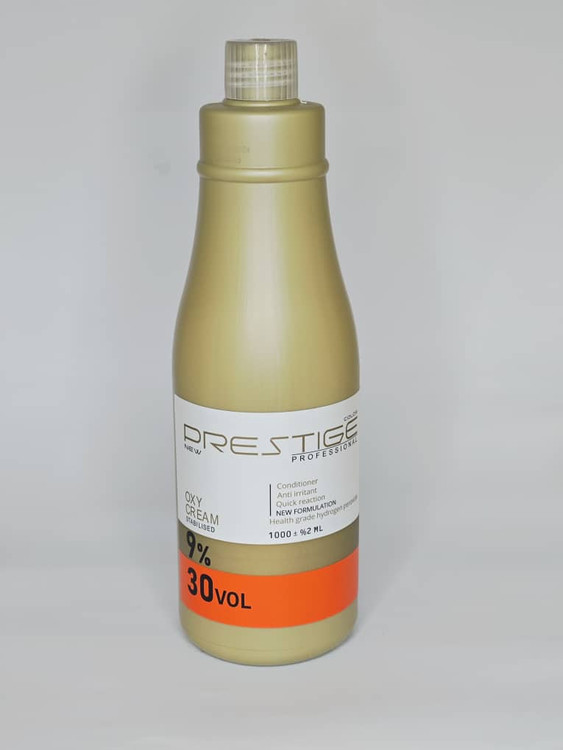 اکسیدان ۹ درصد پرستیژ یک محصول آرایشی-بهداشتی است که برای رنگ کردن مو استفاده میشود. این اکسیدان با حجم ۹ درصد، برای روشن کردن موها به میزان دو یا سه درجه مناسب است. همچنین، این اکسیدان برای موهای کراتینه و رنگهای بدون آمونیاک نیز قابل استفاده است.