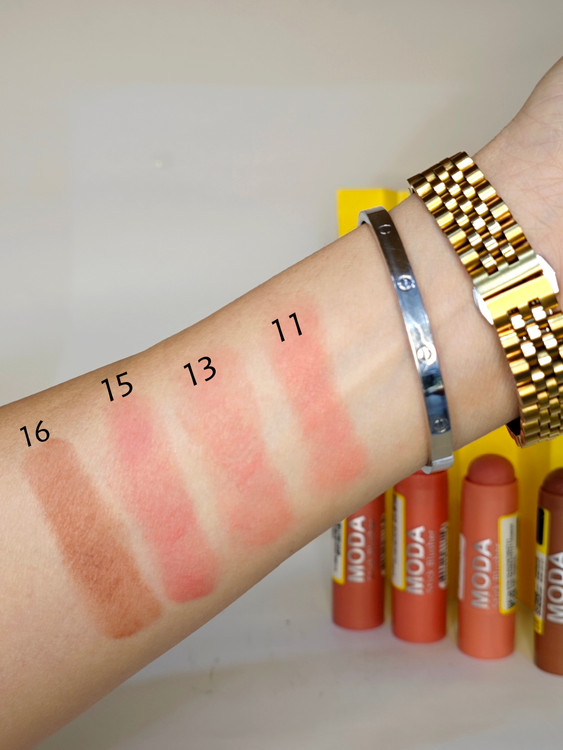 رژگونه های استیکی مودا با بافت کرمی بسیار راحت روی پوست پخش میشن و هیچ ردی از خودشون باقی نمیزارن .