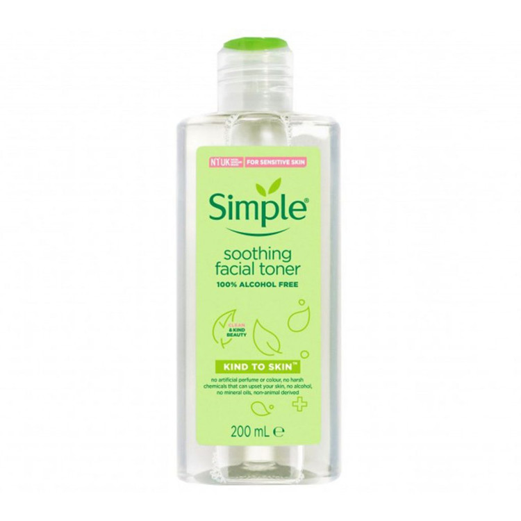 تونر سیمپل حاوی ترکیباتی مثل پرو ویتامین B5، بابونه، فندق افسونگر و آلانتوئین است که دارای خاصیت ضد التهابی و التیام بخشی هستند. این تونر فاقد الکل، عطر، رنگ و مواد شیمیایی خشن با پوست است و هیچ گونه آسیبی به پوست شما وارد نمی کند؛ همچنین غیر کومدون زا است و باعث بروز جوش نمی شود.
